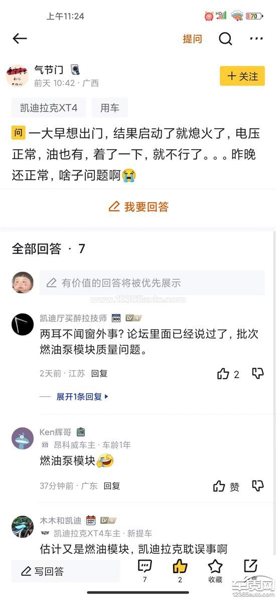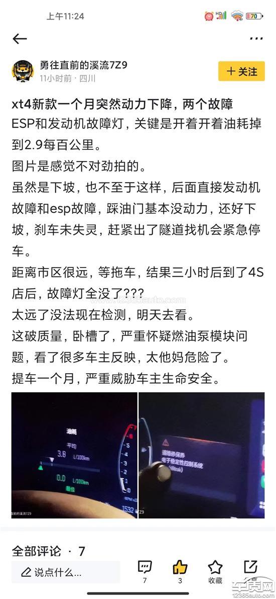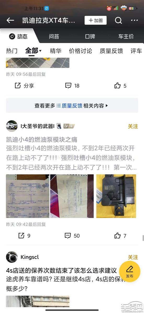 投诉车系:凯迪拉克XT4