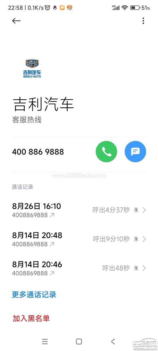 吉利汽车厂家回复:您的信息我们已经收到,将尽快协调相关4S店与您核实处理,厂家也将持续关注后续处理情况。感谢您的支持与谅解,如有疑问欢迎您致电吉利汽车客户服务热线:400-886-9888。