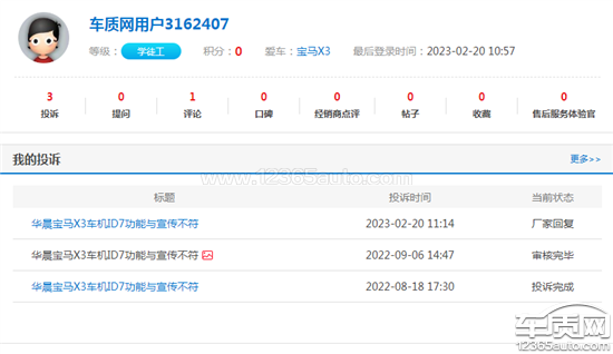华晨宝马厂家回复:您好!感谢您反馈的投诉信息。我们已将相关信息转达给相关授权经销商,如果您对授权经销商的解决方案有异议,可以致电宝马客户服务中心400-800-6666,宝马会积极监督/协助授权经销商合理、合法地解决您反馈的问题,也会视具体情况提供必要的技术支持。客户满意度一直是宝马的长期追求,我们也在不断提升服务,以期让您用车无忧。祝您生活愉快!
