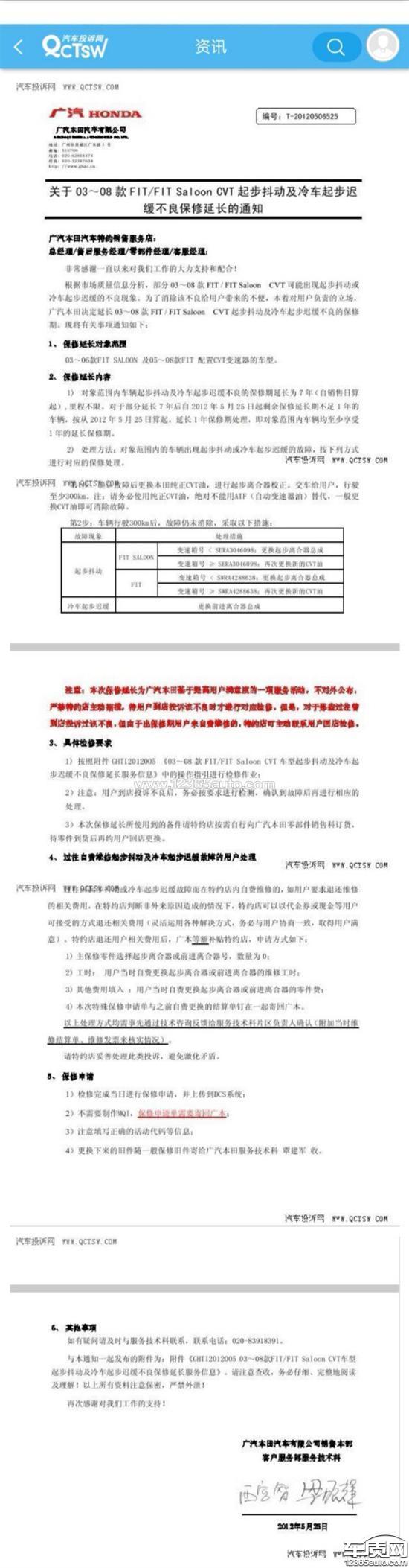 06年飞度1.5自动挡。1.汽车挂d挡起步有延迟要等过1、2秒才开始前进,同时伴随着剧烈抖动和转速下降的情况,在刹车快要刹停时也是同样的情况有时还会发出“咚”的一声发动机转速急剧下降然后恢复,热车时抖动特别明显。2.挂D挡起步踩油门经常有发动机空转的情况,然后突然向前窜一下。3.踩刹车减速时有发动机制动无法滑行和蠕动。4.挂D挡,起步,刹车快停的时候,都会出现发动机转速骤降的情况,伴随全车剧烈抖动。综上所述在网上查阅相关资料发现许多网友的1代飞度都有同样的问题是1代飞度的变速箱通病,属于汽车变速箱缺陷。据悉,广本曾于2012年对此车变速器问题进行召回更换改进后的部件和延长保修。但是却没有主动通知车主,导致车辆故障越来越严重日常行驶伴有变速箱失效的潜在危险。在此我要求厂商应对我的车辆的故障进行免费维修。