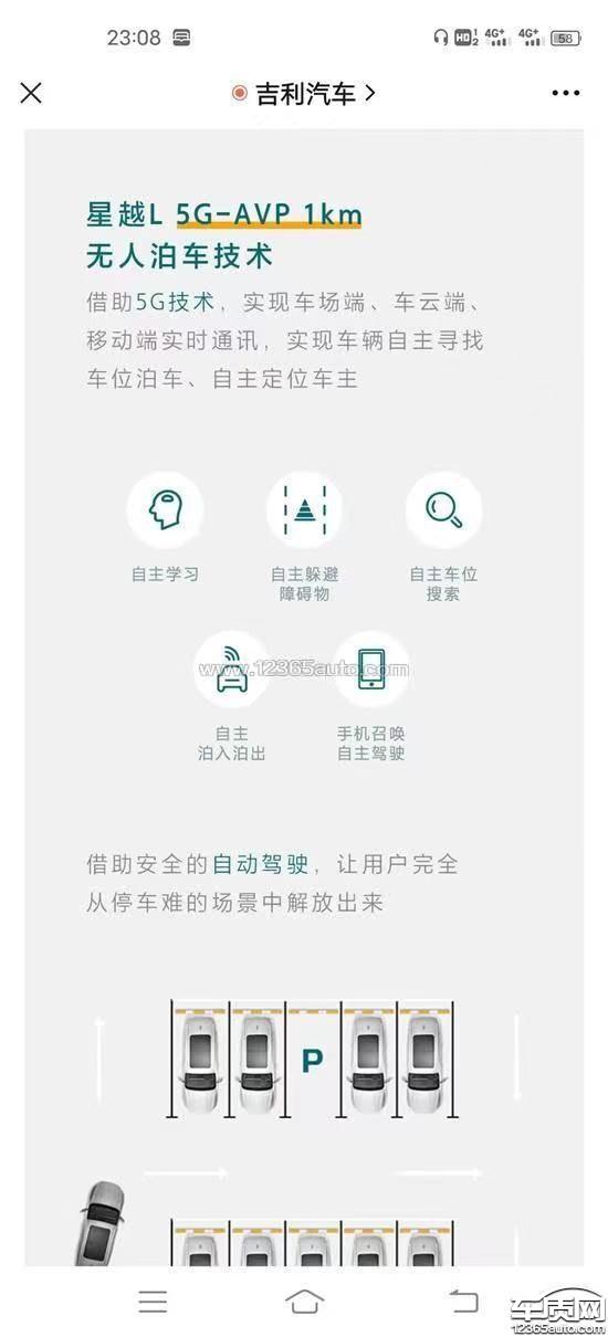 吉利汽车销售公司在宣传承诺时的最后一公里无人泊车、车机5G网络两项功能。从吉利星越L上市至今一直没有见到有更新,我们车主通过后台查到具备无人自主泊车功能,并且更新时间停留在2022年11月26日。后续再无任何更新,当初我们车主在买这个车的时候看中的是性价比,看中的是承诺有最后一公里无人泊车、看中的是车机5G网络。但是截至到发声明为止,车机经过多个版本迭代,均未出现上市时承诺的最后一公里无人泊车和车机5G网络功能。