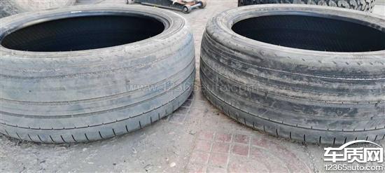 车辆在国道上正常行驶过程中,发生右后轮爆胎,检查发现左右2个后轮内侧严重磨损,胎面三分之一面积钢丝磨断,胎面贯穿。此时车辆行驶总里程7377公里,未发生过任何外力事故。