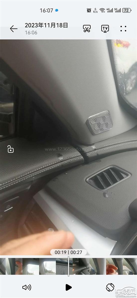 左侧A柱驾驶座位置漏水,刚洗完车,出来踩了一脚刹车,水就往下漏,我觉得安全隐患挺大的,A柱锈了过后,车辆就不结实,要求厂家解决。