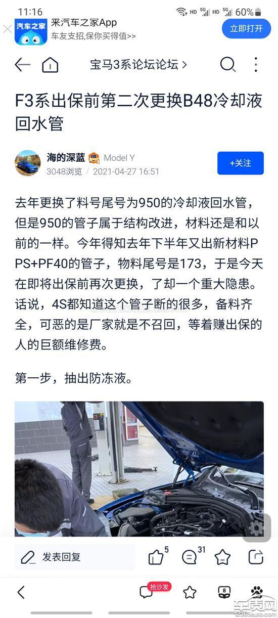 4S店给出的解释是,我在2020年已经更换过一次属于改进型的水管,但是我的零件编码尾数为950,而最新的改进型是173。在论坛上,有车友表示他们的950零件已经更换了,并指出950和173的材质是不同的。因此,我要求4S店更换我的水管,因为我的水管款式和技术通告中需要更换的管子结构是一样的。