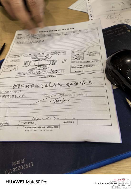 吉利汽车厂家回复:您的信息我们已经收到,将尽快协调相关4S店与您核实处理,厂家也将持续关注后续处理情况。感谢您的支持与谅解,如有疑问欢迎您致电吉利汽车客户服务热线:400-886-9888。