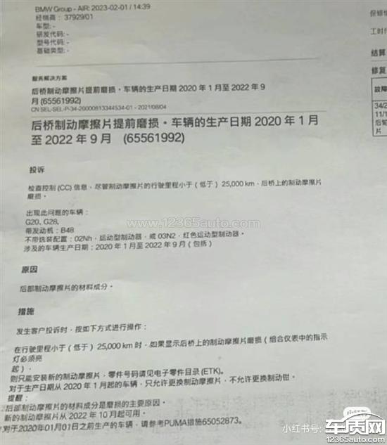 在23000公里保养时,检查出后刹车片厚度剩余4mm,需要进行更换。根据2020宝马技术通报p132,该车刹车片存在质量问题,因此应进行质保。目前车辆行驶24782公里,且仪表报警提示后刹车片需要更换,前往嘉兴进行质保,后被该经销商告知宝马厂家拒绝保修。此后联系宝马400客服,由400客服负责沟通协调,并无后续处理结果,现在要求宝马对该车辆后刹车片进行更换。