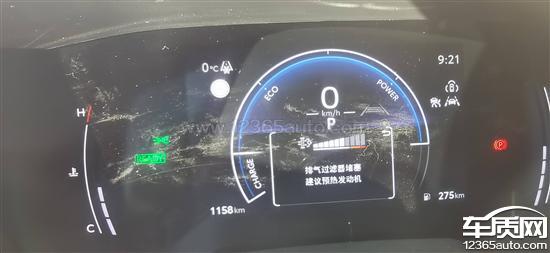 在1100公里时,车辆提示颗粒捕捉器堵塞4格。第二天,堵塞增加到5格,第三天更是达到了6格。发动机发出嗡嗡的响声,EV模式基本不介入。咨询4S店后,他们建议拉高转速。尝试拉高转速后,堵塞降低到3格。但10天后,1400公里时,又一次堵塞到6格。发动机声音很大,油耗特别高,百公里达到20+,这是非常不正常的。请求解决此问题。