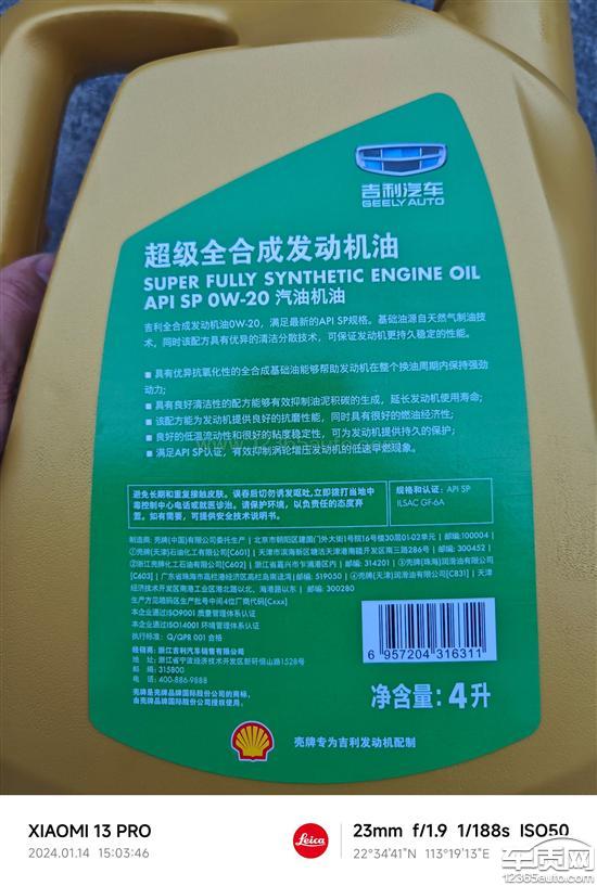 很多车友说现在不带vcc认证的这款机油会使发动机无力,原来换的都是黑桶金标带vcc认证的机油。现在这款是只满足1.5T新款星瑞的机油!