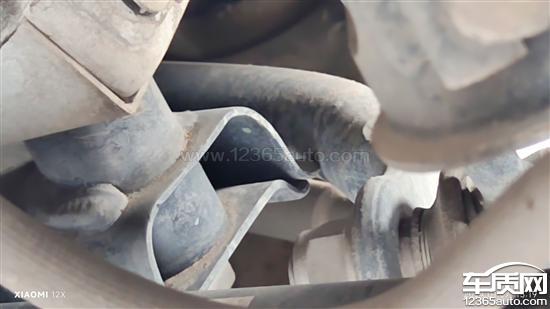 过坑洼路面,出现铁碰铁声音。在车质网也查询到多起相同投诉。均为横向平衡杆设计缺陷,没有定位设计,造成平衡杆移位。触碰位置见图。同时平衡杆的移位导致拉杆过紧,还出现其他异响,声音尖锐。该问题对行驶安全造成极大隐患。