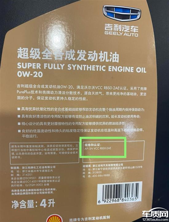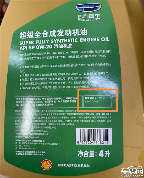 机油不符合用户用车手册中写明机油必须使用有沃尔沃认证的机油,没有沃尔沃认证的APISNVCCRB50-2AE标识,沃尔沃认证机油的高温高剪必须满足等于2.75到2.9的范围之内。新的FG6-A的认证机油第一个没有沃尔沃认证的标识,也经过实验高温高剪也达不到沃尔高温高剪等于或者高于2.75以上的沃尔沃认证,属于销售欺诈行为。与用户手册不符合。吉利汽车承诺送的4年或者12万公里保养属于不兑现承诺,用不符合用户手册的机油来欺骗消费者权益。