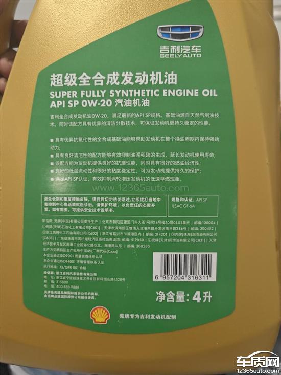 很多平台都在反馈机油与保养手册不符,会产生发动机怠速抖动。4s店说现在都是黄瓶机油,原来黑色的带vcc认证符合保养手册的没有了。打电话问吉利400问他们这个机油符不符合标准。400就说可以用不说符不符合的事。4s店说这是厂家更换的。投诉过一次踢来踢去没有用。