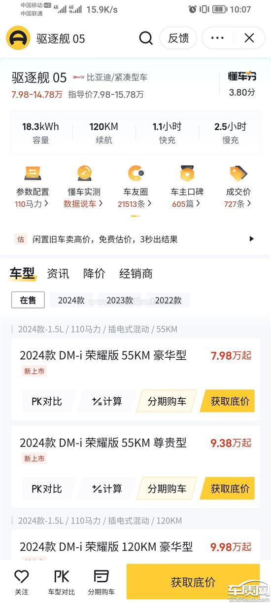 我是23年一月16号入手驱逐舰,当时定价14.2万,这仅仅一年过一个月,再看这款120尊荣型号车价10万起,还有优惠。这一年暴跌4万多,也不给老车主一个说法?当初支持国产电车难道支持错了?