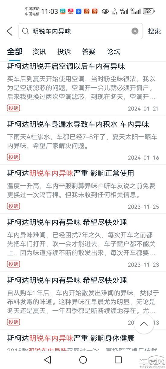 斯柯达明锐车内异味 天窗漏水 希望解决