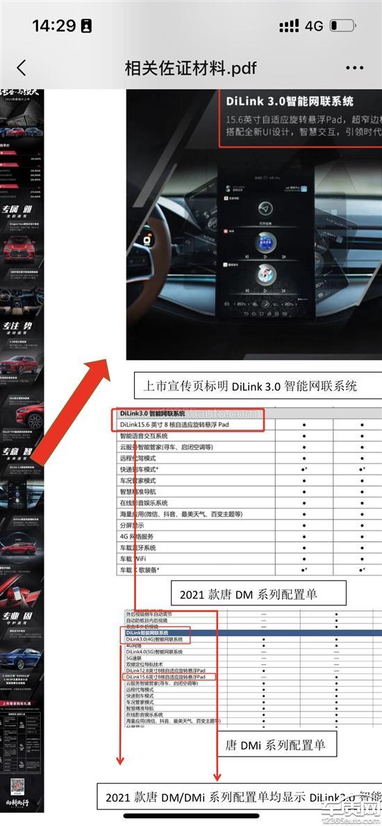 2020年8月通过比亚迪官方推送信息了解到比亚迪2021款唐DM系列开始售卖,在官网各大媒体发布的宣传内容均称该车型搭载DiLink3.0车机互联系统,并终身免费OTA升级,甚至引用“音影娱乐,极速秒开”“智慧交互,引领时代”等宣传标语。基于各种宣传诱导,本人购置2021款唐DM高性能四驱创世旗舰版车型一台。然而提车后发现该车型在实际使用中,频繁出现倒车影像弹出迟缓、无法弹出、导航语音播放卡顿、软件卡顿、闪退、死机,甚至车机出厂自带的抖音、爱奇艺、QQ等软件都无法正常打开使用。经过车友交流群了解,原来唐dmi和新款汉,宋,车机都是Di3系列硬件,处理器为高通骁龙665,运行内存8GB,储存128GB。他们才是真的3.0车机,而我们只是2.0车机,经相同查验办法查询,本人所购买车型搭载的车机硬件版本号为Di2系列硬件,也就是2.0车机,处理器为高通骁龙625,运行内存3GB,储存32GB。硬件配置与真正3.0车机存在差异,然而该车型自2020年8月发布上市至2022年7月并无更新换代。并且比亚迪自己app里说换丹拿音响要车主更换3.0车机才能换!低于3.0的不能更换音响,还推出了2999换3.0车机!这不就是说我们车机不是3.0?为何后面提车的用户给了真正的3.0车机,运行内存与储存更大,系统更流畅?为何如此区别对待?给我们虚假宣传3.0车机,这与实物不符是不是构成了欺诈,是不是要退一赔三的!?且同年发布的汉系列车型前后已进行OTA升级近20次,增加强制保电,HUAWEIHiCar、RPA车外自动泊车辅助、律动音乐氛围灯、驾驶行为记录、dTCS分布式牵引力控制系统、HWA高速驾驶辅助功能、DiTrainer教练模式、NVH主动声、全场景智能语音、智能上下电等各种功能,而同年上市售卖的2021款唐除了更新强制保电外,却从未进行其他OTA升级。现在我们要求补偿车主损失,还要免费更换真正的3.0车机硬件,更新3.0系统并提供相应功能。做到与宣传时一样!