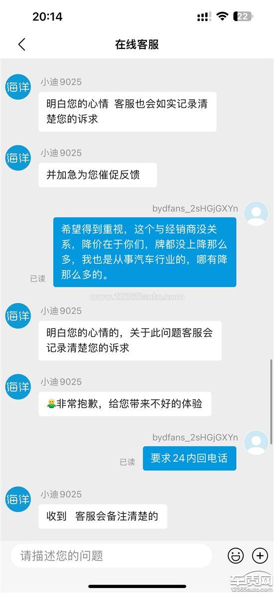 比亚迪厂家回复:感谢您购买比亚迪汽车,我们已经将您所反映的问题反馈至相关部门,请耐心等候,同时请保持手机及其它设备畅通,方便工作人员与您联系,祝您生活愉快。