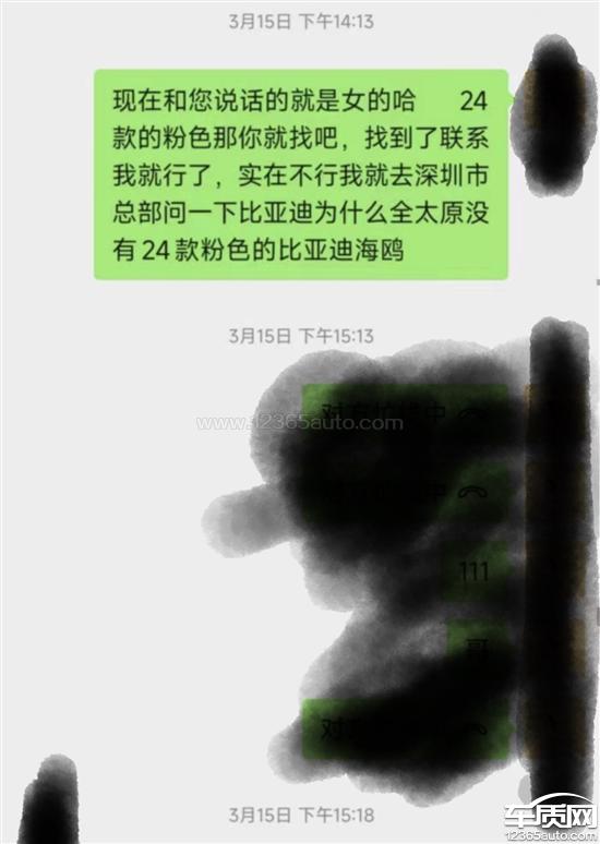 4S店存在欺骗欺诈消费者行为以上述聊天记录为证,我是车主本人,本人于2024年3月14日到达山西太原比亚迪海洋网4S店看车,决定购买比亚迪海鸥车,于2024年3月15日销售告诉我说车到了让我们去验车,到了以后看到车是2023年生产的车且是2023款的比亚迪海鸥并不是2024款比亚迪海鸥荣耀版-活力版立刻决定不要了,于是便有了我和销售的聊天记录,我一再强调我要买2024款比亚迪海鸥荣耀版-活力版的车而不是要2023款比亚迪海鸥的车,且销售偷换概念,让我认为我买到的2024年生产的车就是2024款比亚迪海鸥荣耀版-活力版,我已经给比亚迪总部打电话证实过,我买到的这款车就是2023款比亚迪海鸥,经该比亚迪总部客服描述,由于2024款比亚迪海鸥荣耀版-活力版于2024年3月6日推出,且我买到的车是2024年1月份产出,所以我的车为2023款比亚迪海鸥,且我认为该比亚迪4S店存在欺骗欺诈消费者行为,我要求退车,或者要求该比亚迪4S店给我换2024款比亚迪海鸥荣耀版-活力版。2024年4月2日,由于在整理车时发现主驾驶后座门把手有划痕,且不是我个人原因造成的,联系了比亚迪售后,让我把车开过去,我于2024年4月3日把车开过去以后给比亚迪售后人员检查,该检查员承认该车并不是人为行为导致车后门把手有明显的划痕,比亚迪方向盘三个标识旁有明显的划痕,售后人员承诺我给我更换方向盘推脱责任,只给我换驶后门把手配件,不给我换方向盘的配件,我认为新买的车还不到半个月就出现这样的情况实属不应该,且比亚迪4S店有不可推卸的责任,本次购车并不愉快,希望我的诉求可以得到重视。