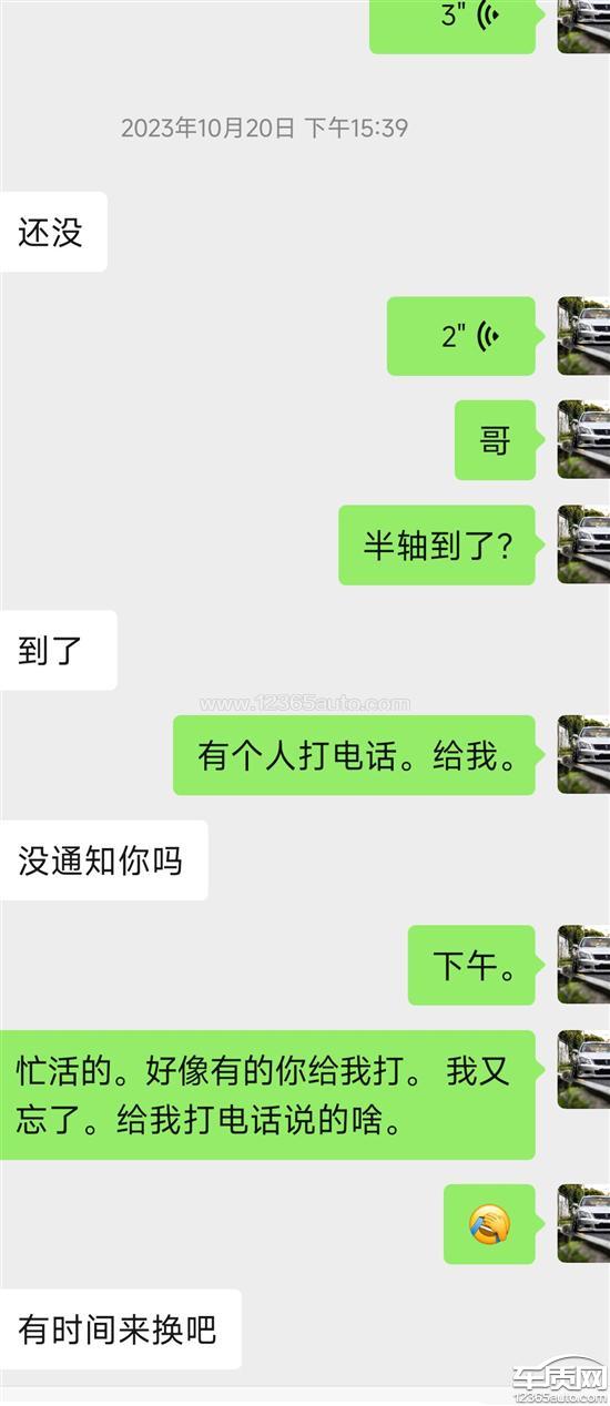2023-1购买海豚开走反馈急加油抖动,过年期间向4s店反映抖动协商后更换第一次半轴传动轴要求不上维修记录,10月份又抖在次换了一次,今年四月份又抖又换了一次半轴应该属于重要零部件,差速器半轴跟车提供轮毂动力输出的。第一次维修记录没有记录但是我有照片通话录音,聊天记录为证。现在汽车又发生大灯前后灯起雾状况。我感觉影响到我的安全,担心车的质量问题。要求换车。