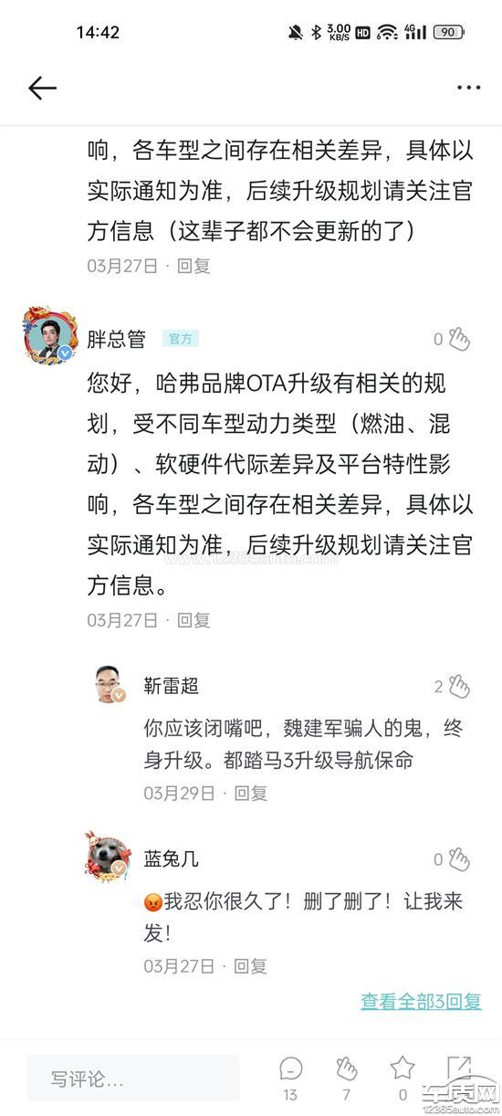 长城汽车厂家回复:您的信息我们已经收到,将尽快安排相关4S店与您联系处理,感谢您的支持与谅解。车辆使用中如需帮助,您可随时致电长城汽车客服热线:400-666-1990进行咨询、反馈,将竭诚为您服务!