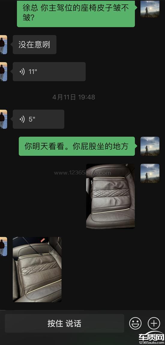 购买不到一年,行驶9800公里的主驾座椅真皮出现不正常的褶皱以及座椅塌陷,相比同款同配置(行驶23000公里、车龄14个月)车辆出现不正常的现象。4月去武汉宝泽检查维修,4S与厂家进行确认以后认为是正常现象。不能接受厂家的认定,车主认为这是不正常的皮质褶皱和海绵塌陷。宝马400打了一个电话,说后期会跟进,跟到现在也没有消息了。大厂是真的牛。