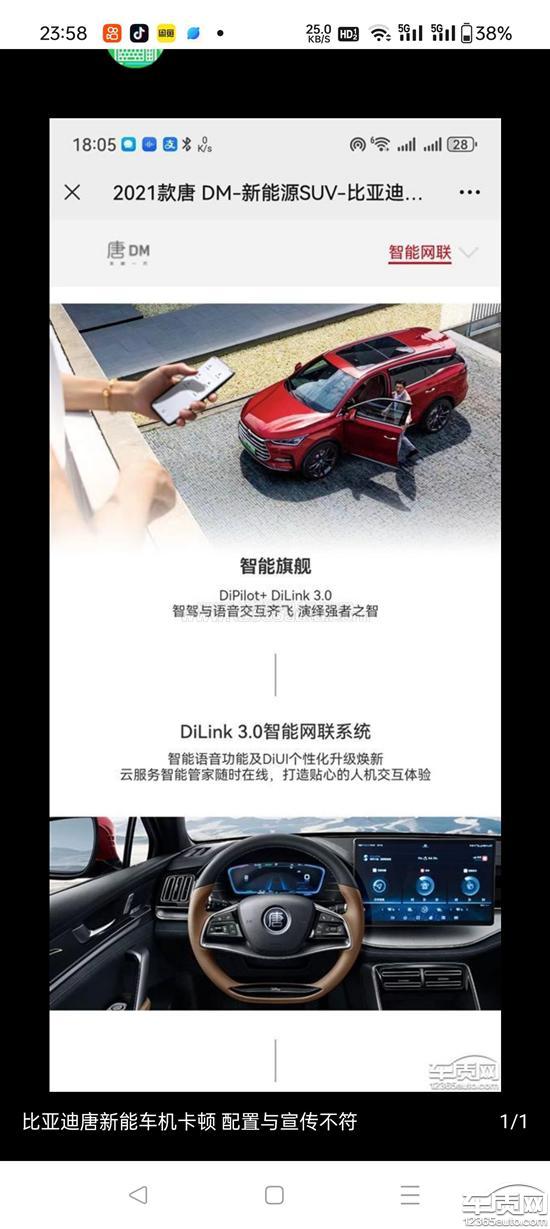 提车前厂家宣传21款唐DM是3.0车机,现在更新这么多次还是2.0车机,而且卡顿,虚假宣传。2020年9月通过比亚迪官方推送信息了解到比亚迪2021款唐DM系列开始售卖,在官网各大媒体发布的宣传内容均称该车型搭载DiLink3.0车机互联系统,并终身免费OTA升级,甚至引用“音影娱乐,极速秒开”“智慧交互,引领时代”等宣传标语。基于各种宣传诱导。本人从20年11月份提车,然而提车后发现该车型在实际使用中,频繁出现倒车影像弹出迟缓、无法弹出、甚至导致了倒车事故!导航语音播放卡顿、软件卡顿、闪退、死机,甚至车机出厂自带的抖音、爱奇艺、QQ等软件都无法正常打开使用。经过车友交流群了解,原来唐dmi和新款汉,宋,车机都是Di3系列硬件,处理器为高通骁龙665,运行内存8GB,储存128GB。他们才是真正的3.0车机,而唐使用的只是2.0车机,经相同查验办法查询,本人所购买车型搭载的车机硬件版本号为Di2系列硬件,也就是2.0车机,处理器为高通骁龙625,运行内存3GB,储存32GB。与宣传严重不符。硬件配置与真正3.0车机存在差异,然而该车型自2020年8月发布上市至2022年7月并无更新换代。并且比亚迪自己app里说换丹拿音响要车主更换3.0车机才能换!低于3.0的不能更换音响,还推出了2999换3.0车机!这不就是说我们车机不是3.0?为何后面提车的用户给了真正的3.0车机,运行内存与储存更大,系统更流畅?为何如此区别对待?给我们虚假宣传3.0车机,这与实物不符是不是构成了欺诈,是不是要退一赔三的!