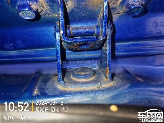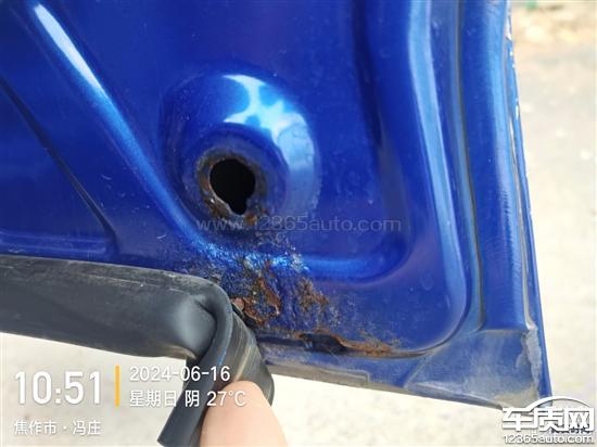 左、右前车门已锈透,无法喷漆修复,车身多处生锈。