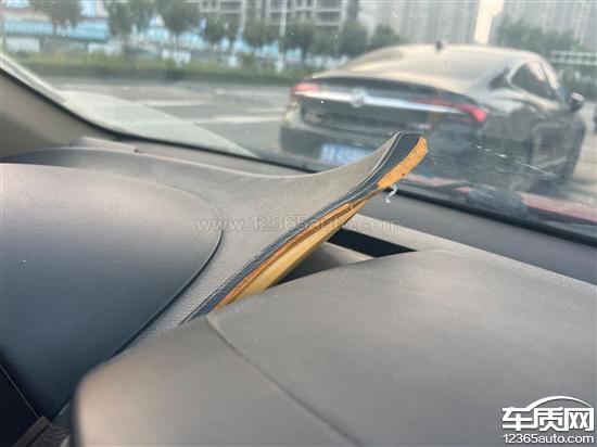 驾驶位及副驾驶前边,仪表台面板开胶,卷起来了。