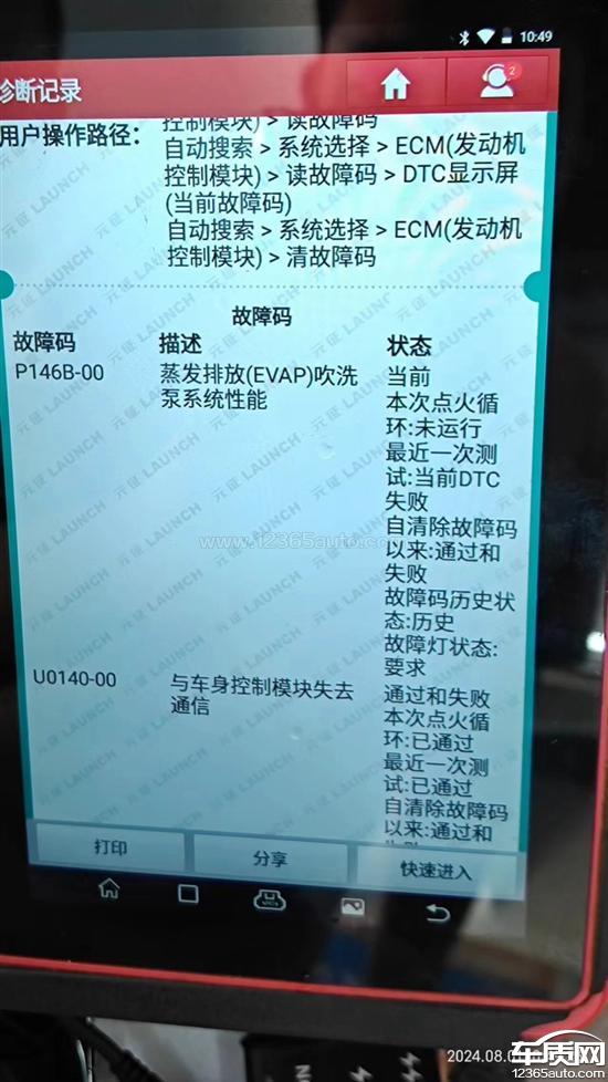 碳罐吹洗泵坏了,这款车通病亮了故障灯,要求厂家解决更换。