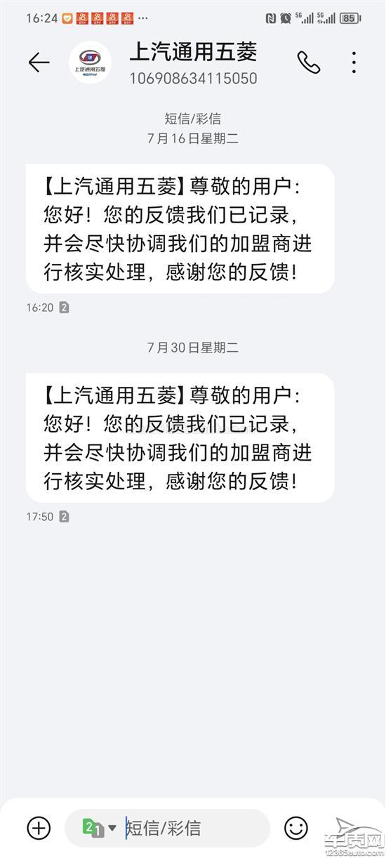 上汽通用五菱厂家回复:尊敬的用户您好!您反馈的信息我们已经收到,将尽快协调相关4S店与您核实处理,厂家也将持续关注后续处理情况,感谢您的支持与谅解。