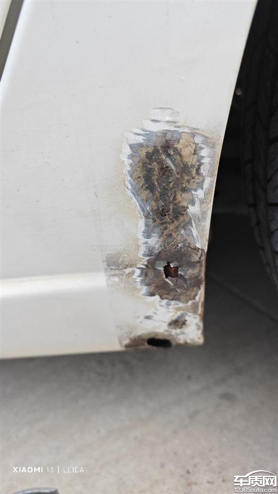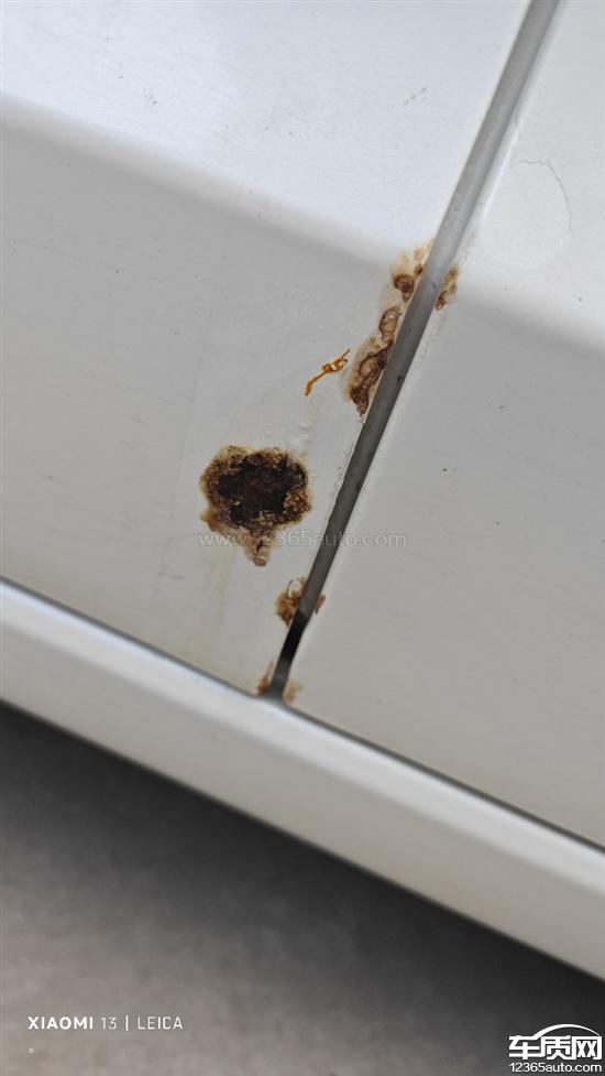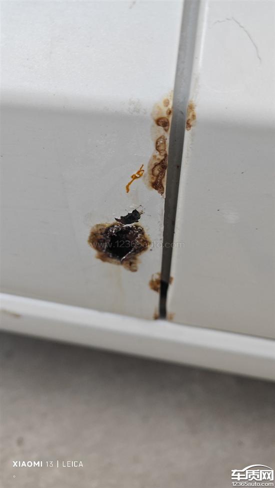 左边两处右边也是两处,主副驾驶车门右下角位置都锈穿了,两侧后轱辘轮眉也锈了,这绝对是质量问题,真是失望,当时买车满心欢喜觉得是国产车性价比高,没想到这些小问题这么糟心!还要自己花钱修,厂家不管!