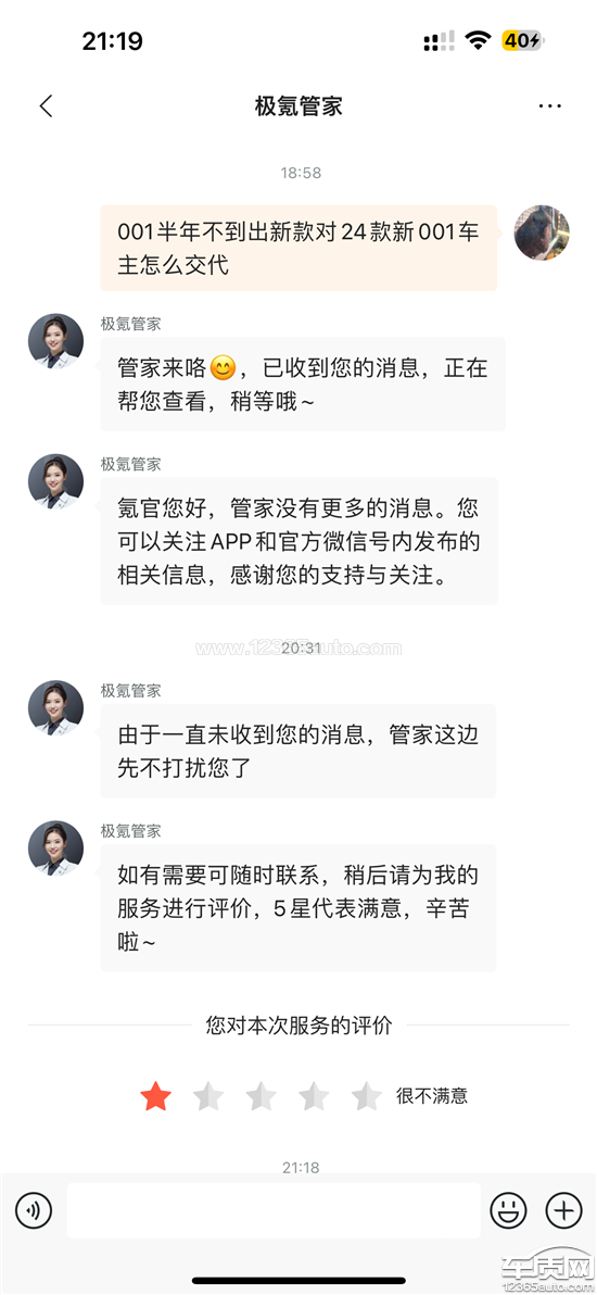 故障售后处理不及时,来回多次无法得到解决,极氪半年换新背刺老客户,一点没有客户至上的服务态度,极氪官方客服对老车主询问的需求不做任何答复。