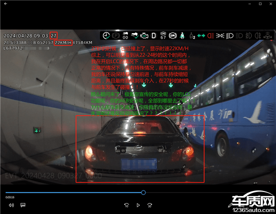 如图,视频中可以看出,发生在早上的9点多,周边环境与车况都正常,本车开着LCC辅助驾驶,并设置60KM/H时速行驶,在21秒的时候,前车刹车灯亮,本车继续保持60KM/H时速,到了25秒的时候,也就是在这5秒的时间内,本车维持时速缩短与前车的距离,直到26秒27秒的时候与前车发生追尾,整个全程都是开车LCC,AEB功能也是开启的,周边路况等也是正常的,并无特殊情况发生!问题就来了,作为一款高端智能安全汽车,请问这哪里体现了,连最起码的跟车都能发生事故?还有啥安全可言!事后第一时间与极氪联系,可他们从始至终并未给出合理的解释,只是一味拿话术搪塞,不承认是车辆问题。我的疑问你宣传LCC功能和AEB安全呢,为什么那几秒的时间,前车在刹车减速,本车确没反应呢,形同虚设,是失灵还是反应迟钝呢?而且现在现在可以直接跳过,不用处理就显示回复?
