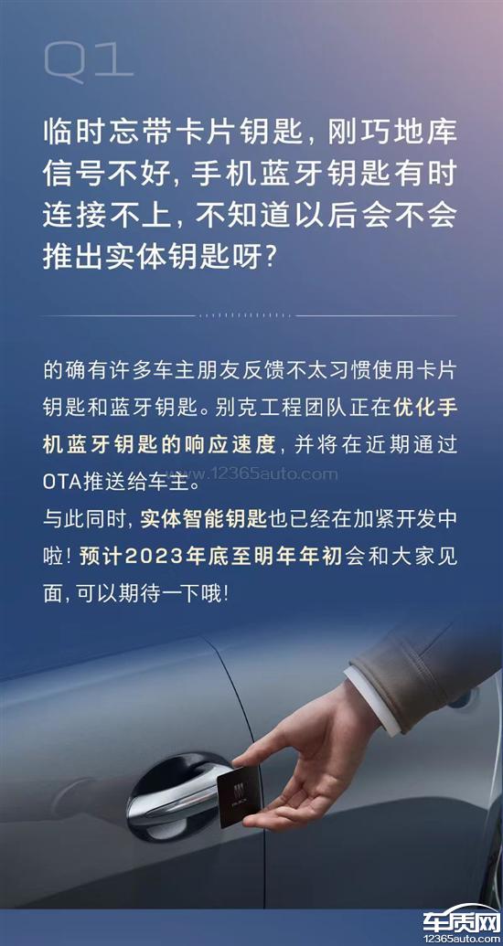 1.别克去年年中推出的别克新君越,其卡片钥匙因车辆响应不灵敏而广受诟病,导致部分意向购车人群望而却步。在2023年7月后的时间段,广大车友购买时,众多4S店销售人员为了提高销量,都或多或少声称后续会有实体钥匙,让车主安心购买。别克官方公众号《别克》在2023年9月15日18点58分发布的公众号文章《你问我答-全新一代君越答疑解惑》中提到:预计在2023年底或明年初(即2024年初)与大家见面。2.之后,别克官方为同期汽车产品别克E5、E4免费补发了实体遥控钥匙,但截至投诉日,别克官方仍未提供赠送或额外购买君越实体钥匙的方案,这给广大车友带来了不必要的麻烦。新君越在2023年购买时价格区间为18-24万元不等,车主们在价格高峰期购买,为支持别克新君越车型做出了贡献。别克此举,无疑辜负了新君越车主的支持和期待。3.现阶段,别克官方为众多4S店销售提供了统一话术,与车主们打太极,或称车辆无法安装无线响应模块,或称24.5款(即半代升级款)自带实体钥匙。甚至有车主尝试联系第三方安装配套设备,但被4S店以不提供质保为由拒绝安装。