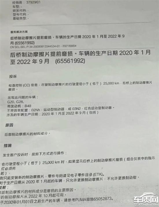 华晨宝马X1,提示更换刹车片,查看发现2020-20220批次的存在异常,要求免费更换刹车片。