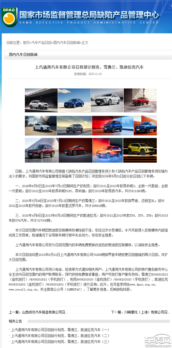 我的车是2020年8月生产的,完全符合召回时间段,到目前未接到厂家召回电话,致电售后,说是部分召回。难道我的车就不是327006里面的一辆吗?凯迪拉克XT4燃油模块存在风险隐患,容易车导致汽车失去动力,严重影响安全,非要等出安全事故吗?直接发一个短信,就算联系我了。