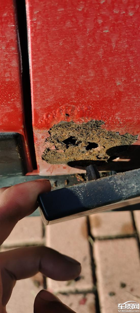 车门锈蚀坏了,副驾驶车门生锈,出洞了。车辆质量问题,要求处理。