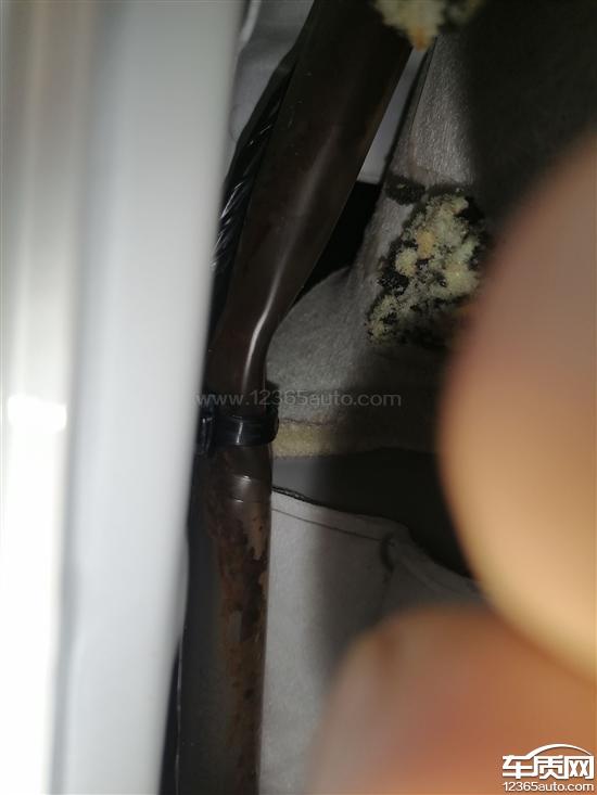 天窗漏水,经检查是天窗排水管被里边的支撑海绵压瘪了,这属于生产时缺陷,只不过是现在漏水了才发现,现在4s店说过保了他们就什么也不管了。
