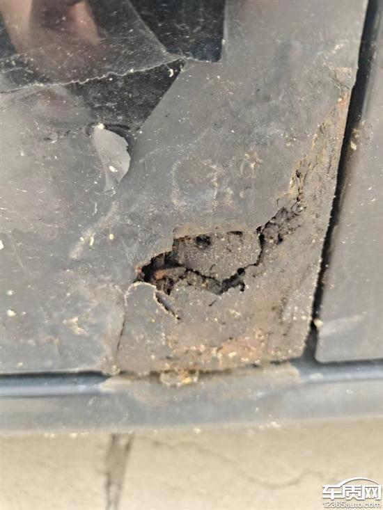 防锈漆处理不当,导致三个车门腐烂!车门烂掉,车窗腐烂厉害!如图所示。