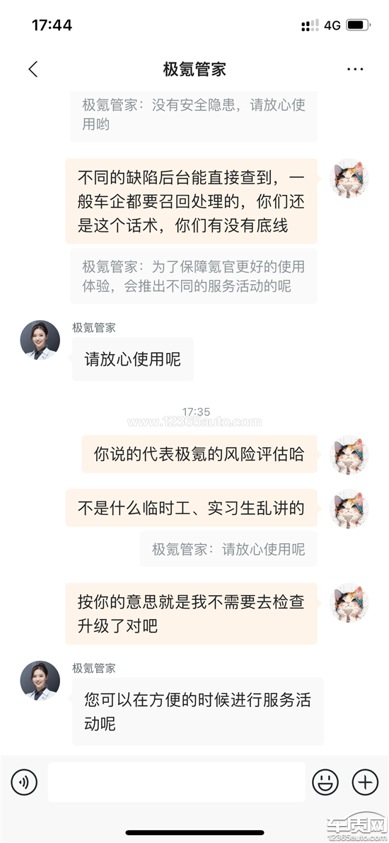 通过管家查询后回复的内容(1、您的爱车有密封活动:拆卸车辆后部底护板,相关部件进行密封升级,以防雨水极端天气对车辆造成影响。提高电车在雨季的用车体验与安全。2、您的爱车有行李箱线束检查活动:检查行李箱线束布置情况,防止车辆行驶在颠簸路况可能会出现车辆故障报警,影响您的用车体验)描述可推断,该所谓的“升级活动”内容,是车辆在出厂前未做到相应的检测和处理,且会在一定条件下影响行车安全,对此类产品缺陷,极氪汽车知而不告,不召回汽车,却在车主主动询问下才告知,并仍声称无安全隐患,且仅通过聊天的非正式方式建议去检测,置车主安危而不顾,毫无底线。现要求极氪官方对我的车辆缺陷维修检测的需求出具书面正式通知,对装配缺陷会产生的影响进行详尽描述,妥善处理并公开致歉,赔偿因车辆出厂缺陷造成的维修记录,对二手车残值的定价影响。我将保留因车辆缺陷产生用车安全事故和影响的索赔追究权利。