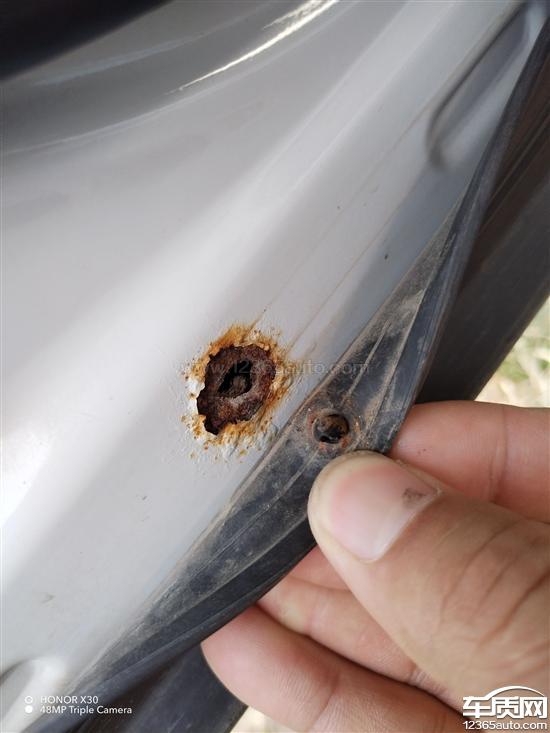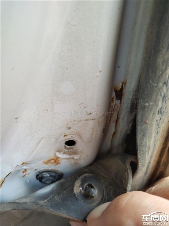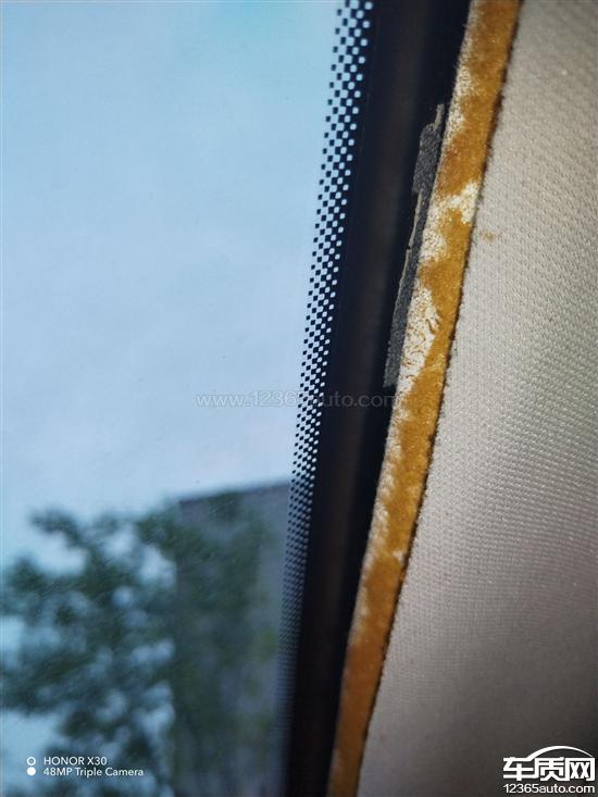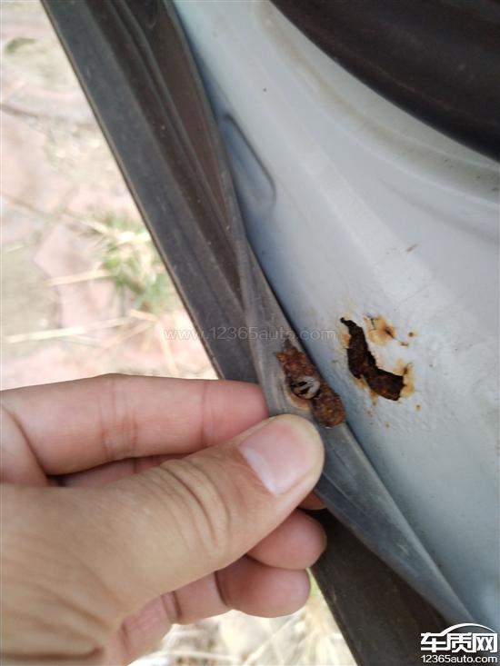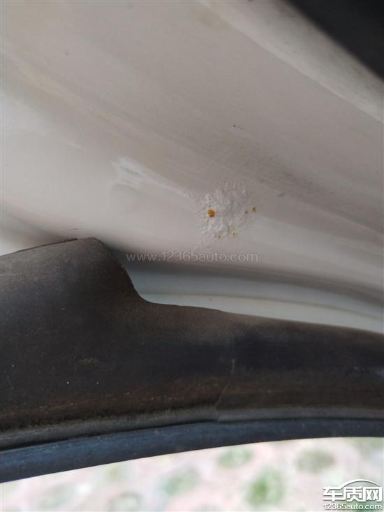 1.前挡风玻璃连接处顶棚脱落;2.门内开门扳手电镀层脱落;3.主驾气囊无故无法报警消除;4.主驾驶无钥匙进去按钮失灵;5.四个车门不同程度生锈