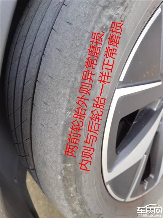 2023年10月中旬,发现两前轮胎出现外侧偏磨异常,到4S店检测被告知车辆正常,只因该车系转弯角度偏大,对外侧有轻微磨损,不用修理,可放心使用。直到一年后的今天,发现两前轮胎外侧异常磨损非常严重,已导致轮胎外侧胎纹被磨平,表现非常光滑,大大减弱了两前轮胎行驶时的摩擦抓地力。针对轮胎偏磨情况,10月16日第二次到同一家4S店检查。检查后,售后人员还是说:车辆数据正常,不需要修理。ID4车转弯半径小,外侧偏磨是正常情况。因该车辆是按照厂家售后要求做定时保养,并已有两次向该车代理4S店提出前轮胎外侧异常偏磨情况,但4S店无法修理,反而说是正常磨损。现在车辆购买已两年零3个月左右,其四条轮胎中仅有两前轮胎外侧异常磨损,减弱了轮胎行驶时的抓地力,预计再继续行驶半年,两前轮胎外侧必定磨出白棉线、钢丝。除两前轮胎外侧两处异常磨损外,四条轮胎的其它位置都是正常磨损。在正常使用车辆的情况下,轮胎能行驶6万公里左右。现在轮胎使用寿命缩减了一大截,强烈要求厂家赔偿两前轮胎,并改善偏磨情况。