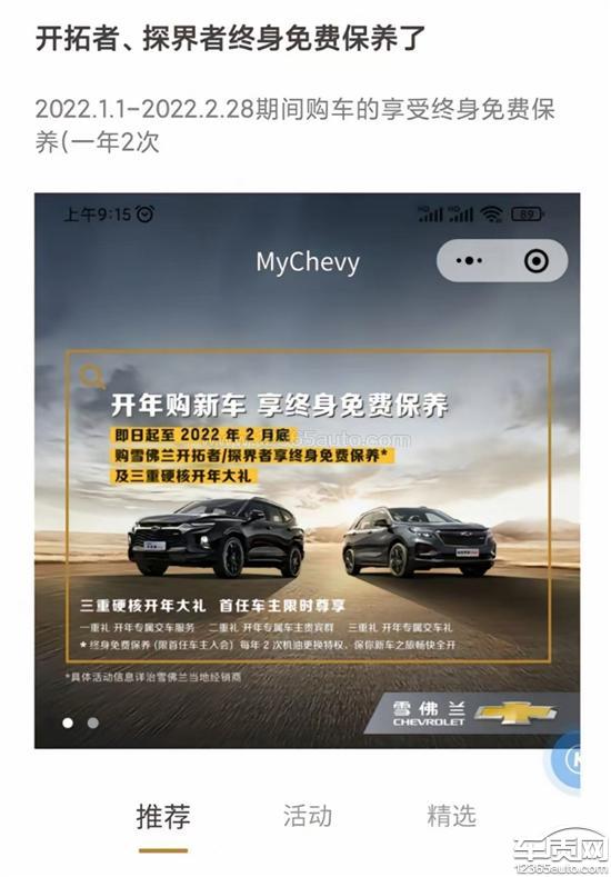 2022年2月15日,在辽宁盘锦购买了雪佛兰探界者2022款轻混550TRS四驱智能捍界版汽车,当时参与雪佛兰厂家和经销商的“终身免费保养”活动,2022年、2023年两个年度都正常享受了该“终身免费保养”活动,2024年10月去该店保养被告知“终身免费保养”不能使用。