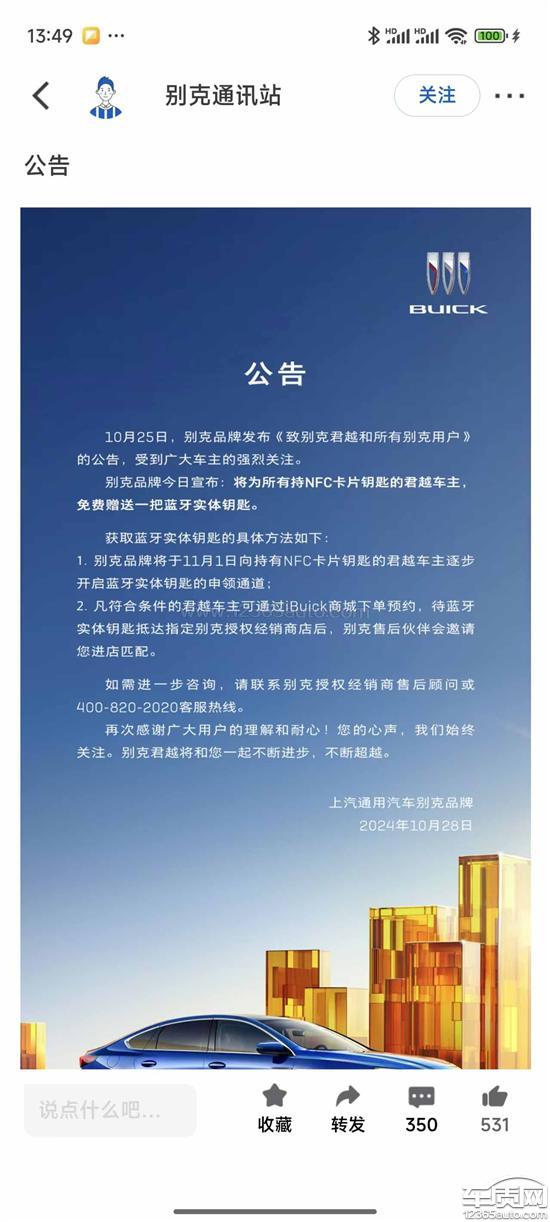 本人于2024年10月24日在上汽通用别克授权4S店,购买了别克E5新能源汽车一台,提车后使用中发现该车配备的卡片钥匙存在严重缺陷,该卡片必须紧贴车辆才能使用,且存在偶发性感应不灵敏的问题,导致本人在雨中反复尝试刷开打开车门。偶然间我从别克APP上看到别克品牌于2024年10月25日发布了一篇《致别克君越和所有别克用户》的公告,该公告明确为“致别克君越和别克所有用户”,且公告中明确提到“收到部分用户反映不习惯使用卡片钥匙和蓝牙钥匙”,并指出别克品牌相关部门很快会给用户一个满意的答复。2024年10月28日,别克品牌再次发布公告,将为持有卡片钥匙的君越车主免费赠送一把实体钥匙。由此可见,别克品牌明知其销售的车辆配备的卡片钥匙存在严重缺陷,却只对君越车主赠送实体钥匙,对于同样配备了卡片钥匙的E5车主则无该项措施,对E5车主存在明显的消费歧视和差别对待,违反了消费者权益保护法,严重侵害了E5车主的权益。要求:补发实体钥匙。