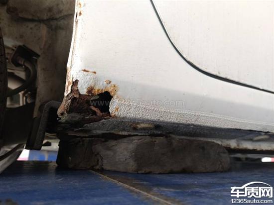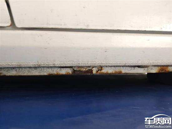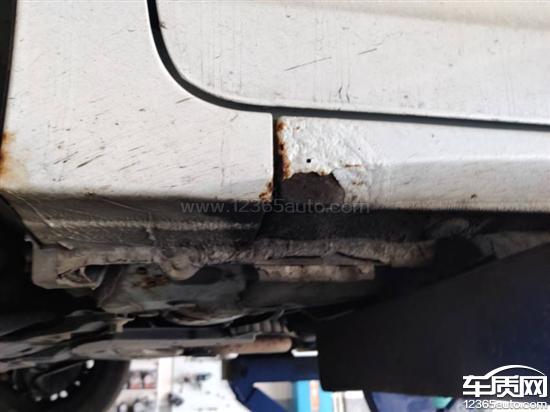 车底盘两侧、轮拱以及车门局部,在未发生碰撞、维修的情况下,出现严重的生锈情况,车身部件正在被腐蚀。这种情况从很早就开始了,现在变得很严重了。这是很明显的产品质量不合格的问题。