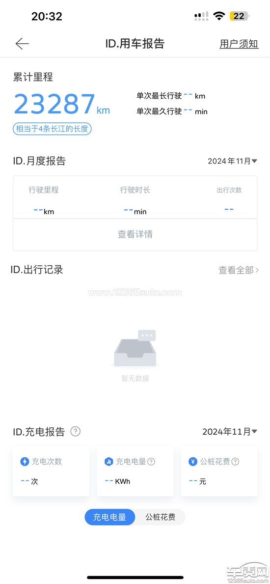 一汽大众APP里面用车报告菜单功能仅有累计里程,其他为空,要求处理。