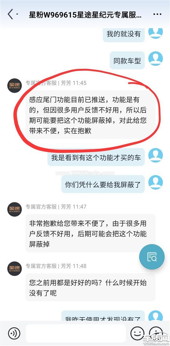 购买et的时候看到有感应尾门功能才购买的,因为我经常要搬重的东西放后备箱,这个功能对我来说很重要。今天使用这个功能,没有了,我去车机上面看,有没有这个功能开关,感应尾门车机有bug厂家不是积极处理解决问题,而是在没有经过车主同意情况下私自屏蔽这个功能。车机卡顿,升级车机需自费。
