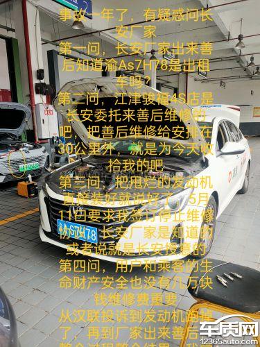 23年11月因发动机异响,去维修三次,在第三方介入才修好,一个月左右,24年1月在重庆九永高速上行驶中发动机跑掉了,半轴,传动轴都落了,原因是基角镙丝断了俩颗630报道小汽车高速犯病,心脏脱脱。长安厂家才委托4S店经理出来善后维修,承诺尽快按4S店标准修复,费用由厂家承担。结果一进4s店就变挂了,1月16日进厂,说重庆没有基角镙丝,等十天,26号货了直接把碰烂的发动机装好,忽悠我修好了,我是合规网约车,让我上路春运,结果第一天,发动机机仓浓烟滚滚,给他们打电话说有安全隐患,他们说没事可以跑,一直拖到2月21号,我多次打电话才叫我开去维修,结果3月1日维修清单显示整个发动机处于报费状态,修理工告诉我基乎换完了,只有汽缸将就用,而且有一缸漏气,4月中旬开空调动力不足,变速箱几个油封同时漏油,返4s店维修,换了油封,结果还是动力不足,变速箱漏油,4s店要求我签订停止维修协议,我不同意,4s店,长安厂家都不管了,951999.4008886677.12345.12315打了几十个不解决问题,没办法,自己到处找修理厂维修,磨了汽门也不解决问题,维修过程中发现三元催化被甩破,颗粒补助器被阻塞了,全换无用,最后把发动机全换才修好,变速箱一直漏油,也不知道有没有安全隐患,整天都是提心吊胆的,长安厂家至今都不面对,不解决问题。在整个善后维修过程中,我有疑惑问长安。第一问,长安厂家出出来善后知道我的车是出租车吗?第二问,4s店是长安厂家委托善后的,距我家三十公里外,是不是就是为了收拾我,所以才出现这种情况。第三问,把碰烂的发动机直接装好就忽悠我修好了,和5月11日要求我签订停止维修协议,厂家是知道的还是厂家授意的。第四问,我和乘客的生命财产安全在长安眼里不值,维修费用几万块钱吗?第五问,现在变速箱还有没有重大安全隐患,这一年来都是提心吊胆的。从投诉汉联技术不行修不好车,到发动机脱落,再到长安厂家出来善后整个过程,给我的感觉所有一切都是故意的,人为的。