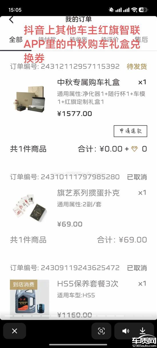 本人于2024年9月10日购买的全新红旗H5,11月12日抖音上看到别人的红旗智联APP上有红旗中秋购车礼盒的兑换券,于是我看了我的红旗智联APP发现里面什么都没有,随后我打了红旗官方400电话,客服给我的答复是9月9日到9月17日之间购车的都有,我问怎么我的智联app里面没有她说她也搞不清楚。她给了我购车4s店的售后电话让我打电话问4s店,然而4s店给我的答复是她们也不知道有这个东西,我问了当初买车时候的销售他表示他也不清楚。红旗作为国产豪华品牌就是这么糊弄消费者的吗?还搞区别对待!!!请厂家给我的这个礼盒补上。