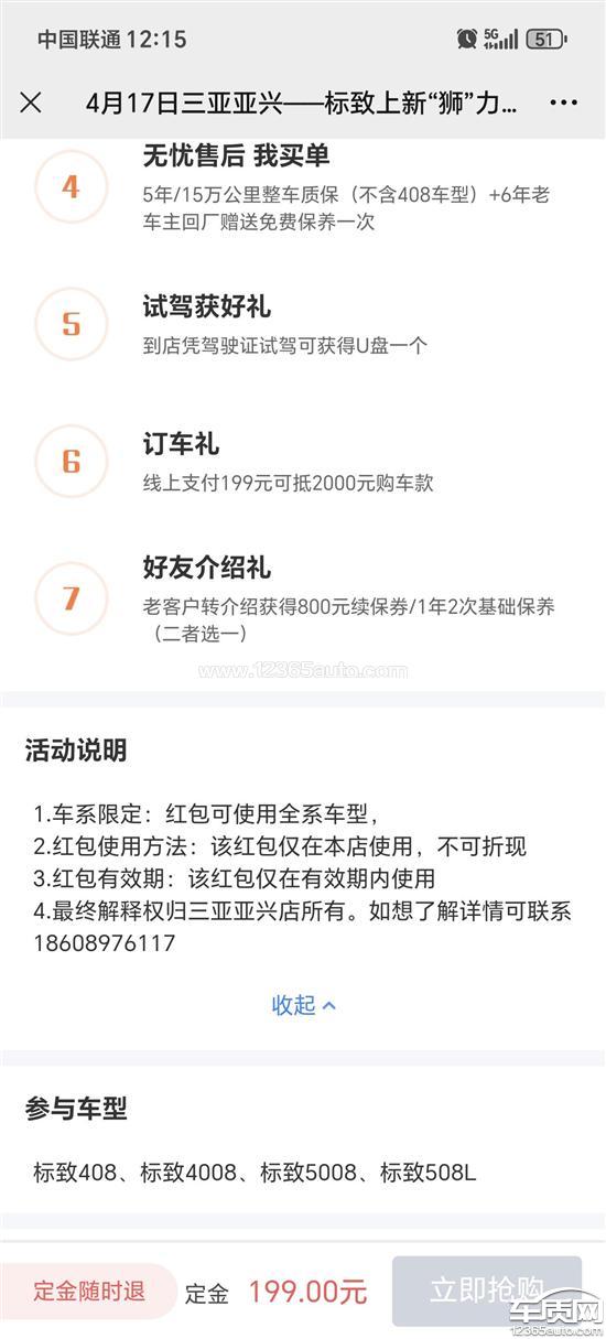车子是2021年3月上牌,当时标致各种宣传页、销售口径都是5年15万公里质保,但是现在过了三年,去了售后售后表示过保了。说厂家的政策当时确实是有五年十五万公里质保无忧,但是需要签延保合同。或者合同里面有体现。如果没有那不好意思只能按照三年十万公里。我们作为消费者,一直以为厂家政策就是五年十五万公里质保,哪里知道需要签延保合同。厂家本身就有这个政策,不能因为4s店没跟我签延保合同厂家就不认吧。延保政策也不收费!现在4s店也关门了。投诉处理无门.