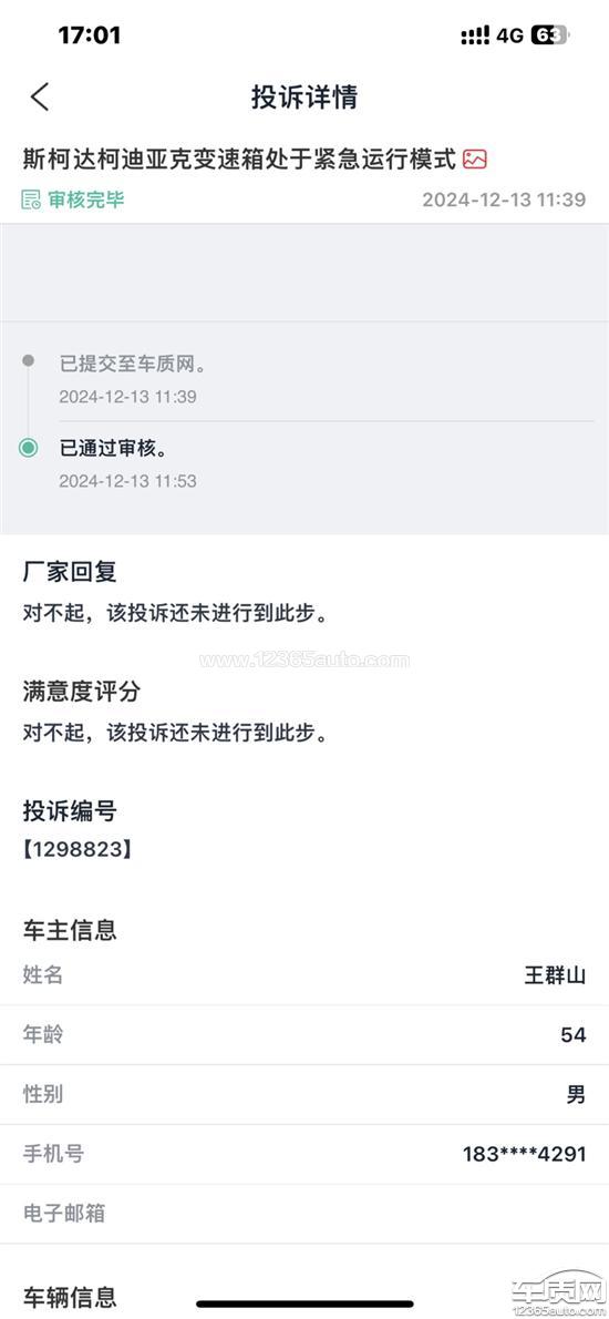 18年3月份的车,行驶4万9000公里,十一月26日高速行驶途中突发变速箱紧急运行模式报警遂,立即靠应急车道停车与多 方沟通后可继续行驶后,最近高速出口下高速,回家后 与4S店沟通索赔流程后车辆开往4S店后读取故障码,上传厂家数据申请索赔,4S店报价维修工时费1200元,因着急用车所以同意等待接近半个月后12月12日更换完成事后了解到 这是大众代号DQ380变速箱通病,搭载此变速箱多辆车型在质保期结束后出现相应故障,且了解到多位同年购买车主已有免费更换而且带有一年所换部件质保的情况,了解后与大众集团客服沟通并未积极处理且出现推诿以过保为由拒绝,作为一个消费者买 车最看重的就是大家口中的三大件,没想到车辆在不到五万公里的时候就出现了变速箱故障,让消费者感到心寒既 然是通病所以希望退还我所付的工时费,并提供一年变速箱机电单元质保,也希望上汽斯柯达重视此问题。希望上汽集团承担该有的企业责任。我与12月13日在车质网投诉 后厂家未受理,也没有相应经销商与我联系,希望厂家尽快解决