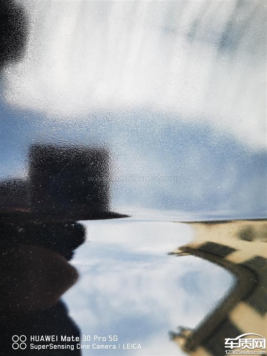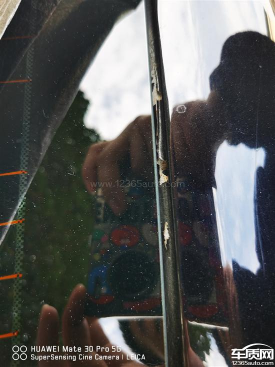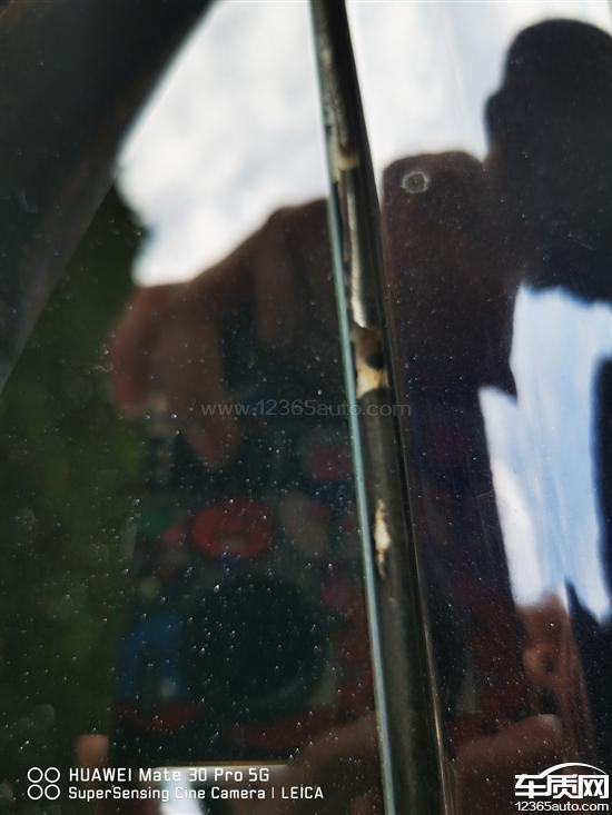 后挡风玻璃右侧缝隙大面积掉漆,前引擎盖漆面爆漆,漆面凹凸不平。
